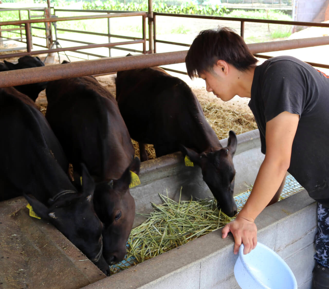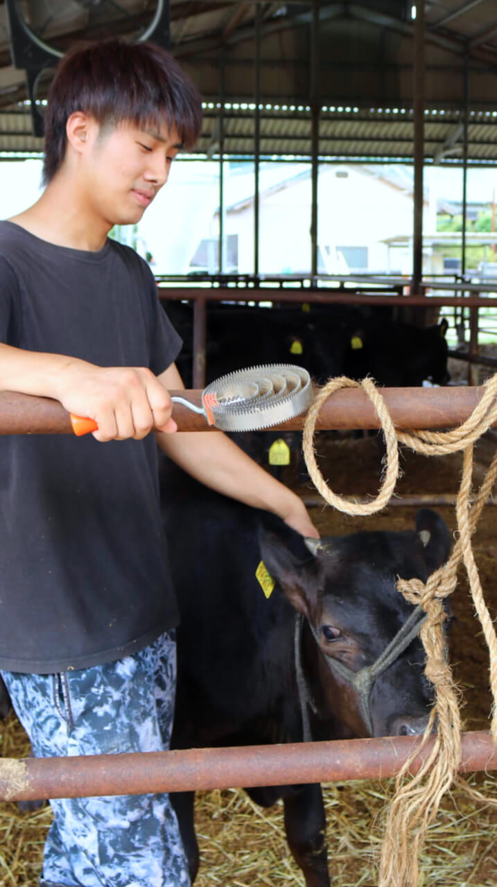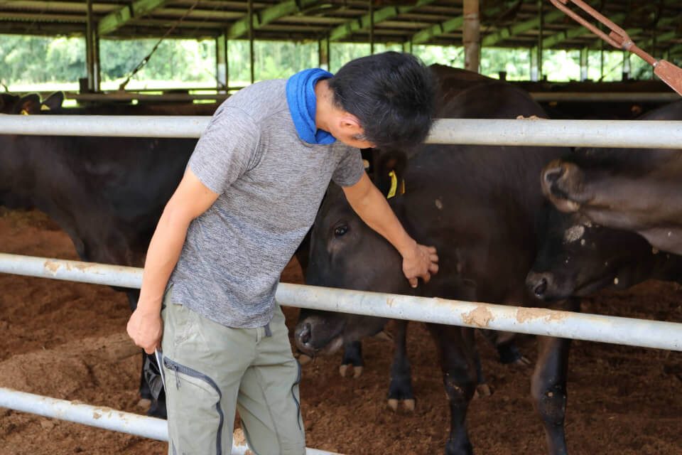 徐々に高カロリーの配合飼料に切り替えていき、最終段階では赤身はきめ細かく脂質(MUFA 一価不飽和脂肪酸)を高める飼料を与えることで、脂の融点が低く、食べた時にサシが多くてもあっさりと食べられる肉を目指しています。